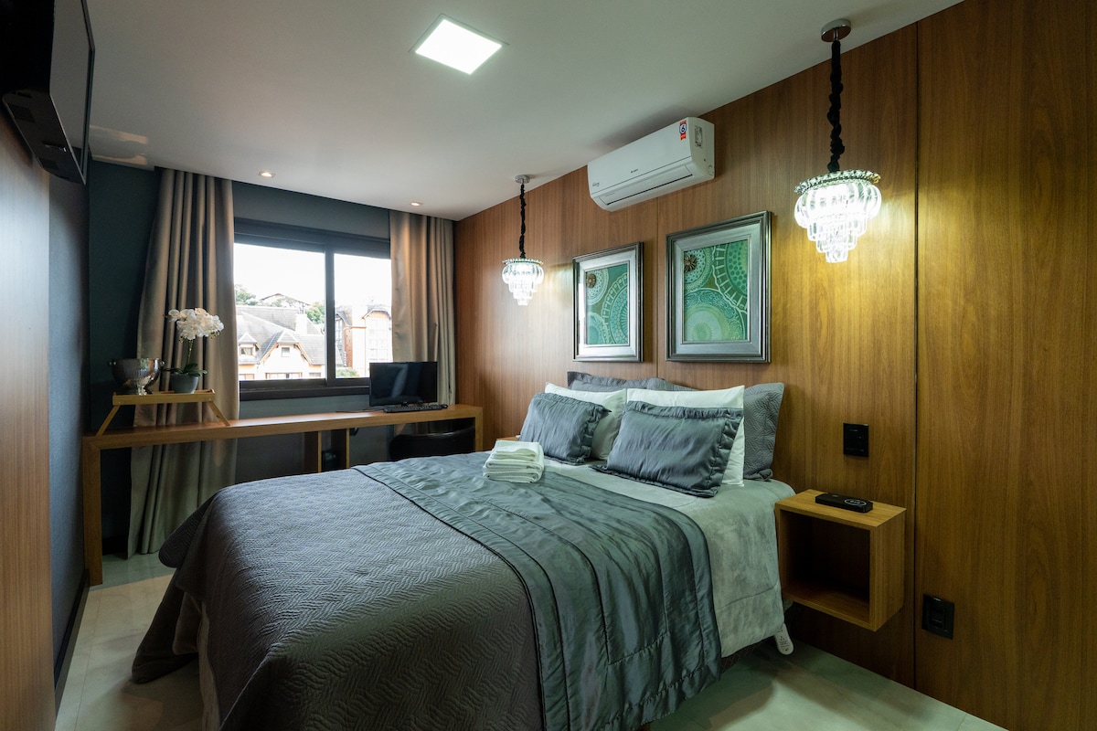 Šis apbrīnojamais augstākās klases dzīvoklis ir pilnībā pārveidots! Tā piedāvā 180m2 platību un eleganci katrā detaļā, lielus logus ar ekskluzīvu panorāmas skatu uz Quilombo ieleju, 70"Smart TV viesistabā un 43" divās guļamistabās! Turklāt tas atrodas tikai 2 kvartālu attālumā no Kobertas ielas! Tā kā tā atrodas centrā, jūs varēsiet darīt daudzas lietas ar kājām, nodrošinot ērtības, atstājot automašīnu un pārdomājot ar mieru un klusumu, visu, ko piedāvā Gramado!