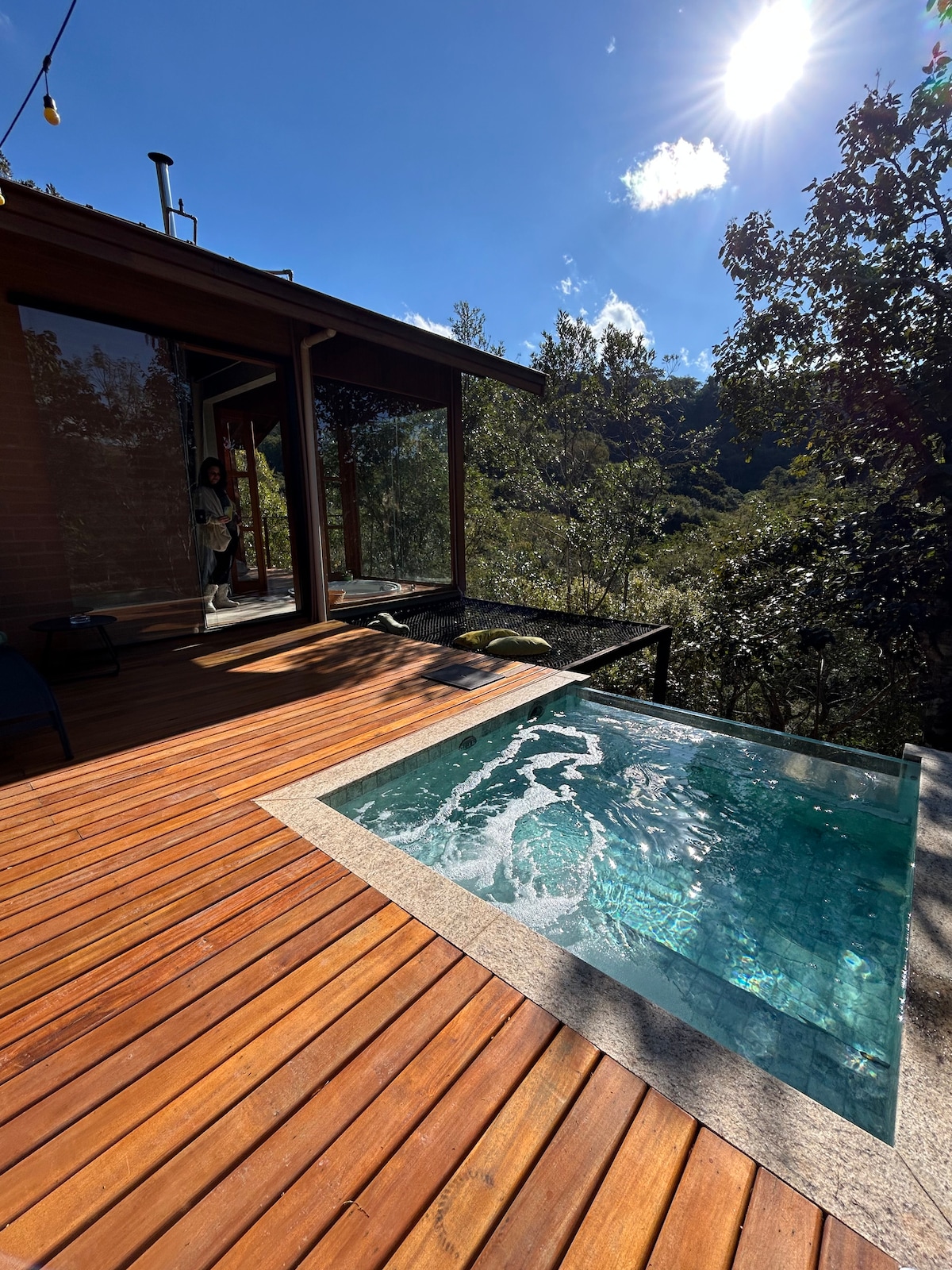 Atklājiet Serra da Mantiqueira šarmu šajā namiņā, kas veidots tā, lai jūs varētu vērot saullēktu, neizkāpjot no gultas. Nāciet atpūsties mūsu apsildāmajā spa, vērojot zvaigznes virs galvas un šūpojoties tīklā. Kabanā ir integrēta istaba ar mājīgu divguļamo gultu (Queen). Dzīvojamajā/virtuvē īpaši ērts futons uzņem vēl divus viesus, padarot piedzīvojumu ideāli piemērotu ģimenēm. Īpašumā ir arī takas un nelieli ūdenskritumi.