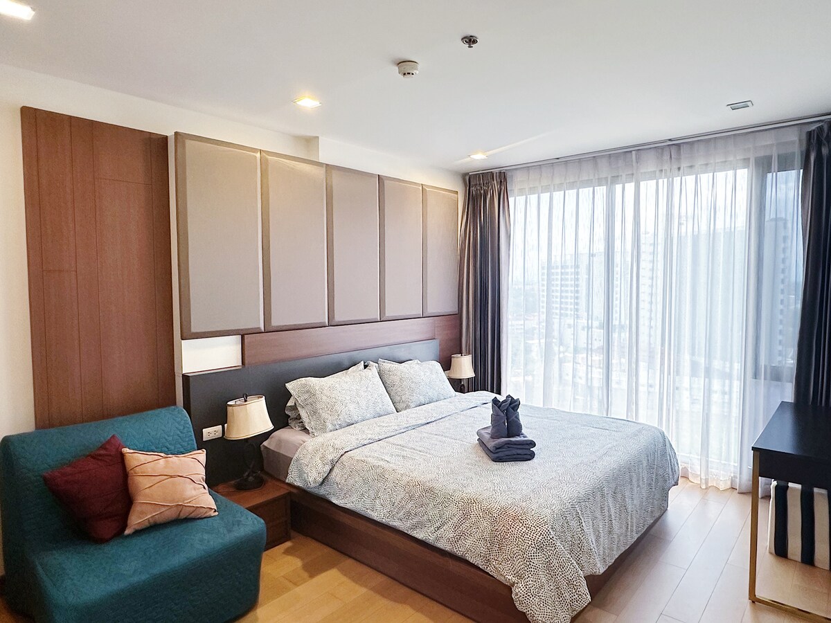 Atšķirībā no tipiskām mazākām vienībām, jūs rezervējat ekskluzīvu 46 m2 atpūtas vietu, padarot to par vienu no lielākajām un greznākajām telpām ēkā. Mēs esam lieliski izvietoti 15. stāvā, nodrošinot jums panorāmas, nepārtrauktu skatu, ko vienkārši nevar saskaņot ar zemākiem stāviem. Jūs izbaudīsiet brīvu skatu uz lielisko Doi Suthep kalnu, ko lieliski ierāmē jūsu logs un milzīgs privāts balkons. Mājoklī ir King izmēra gulta un 47 collu 4K Ultra HD Smart LED televizors.