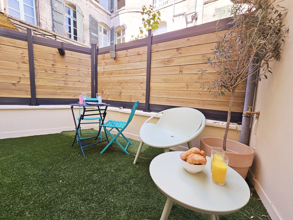 🌿 Charming 1-Bedroom Apartment 🍀 With free parking ✅️ ➡️ Located in an old building in the heart of the Madeleine district in ⚜️ Angoulême ⚜️ Train Station 🚆 : 🚶7 min City Center: 🚶♂️12 min All shops/public transport: 🚶🏽♀️2 min 😴 Bedroom - Queen-size bed & 🔅Lighting 🔆 adjustable via remote control ⚙️ 💤 Sofa bed 🛜 Very high-speed Wi-Fi 📺 55" Smart TV 🎧 Home cinema 🍿🎥 NETFLIX 🍺| ⛱️Terrace (🔜 Summer 2026) Adding 10€/person/day if booking for 2 with 2 beds
