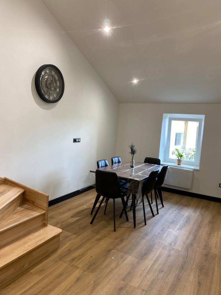 Viss mājoklis. Pilnībā aprīkots, gaišs un ērts, ar atsevišķu guļamistabu. Dzīvoklis ir duplekss. Pirmajā stāvā atrodas guļamistaba, vannasistaba, kā arī tualete. Virtuve, dzīvojamā istaba un ēdamistaba ir augšstāvā. Guļ pāris + bērns. Atrodas ciemata centrā, ar maiznīcu 50 metru attālumā un bioloģisko pārtikas veikalu 100 metru attālumā. Kebaba uzkoda 50 metru attālumā. 5 minūšu attālumā no šosejas un 10 minūšu attālumā no Creutzwald vai Saint-Avold.