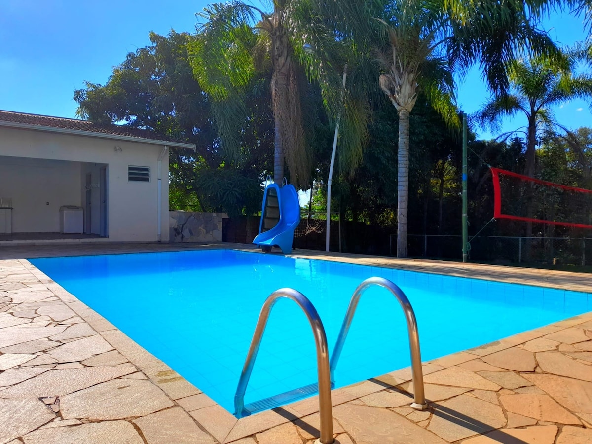 Aizvediet visu ģimeni uz šo lielisko mājokli, kurā ir pietiekami daudz vietas izklaidei. Mēs varam viegli uzņemt līdz 20 personām! Mums ir pieaugušo baseins un bērnu baseins ar ūdenskritumu, rotaļu laukums, pingponga galds, grils, grils un pilnībā aprīkota virtuve. Visas mūsu mājas zonas ir ļoti lielas un ērtas! Ļoti laba atrašanās vieta ar vieglu piekļuvi pa asfaltu, 10 minūšu attālumā no Thermas ūdens atrakciju parka, 3 km attālumā no Águas de São Pedro, skaistas un drošas pilsētas ar bāriem, restorāniem un veikaliem.