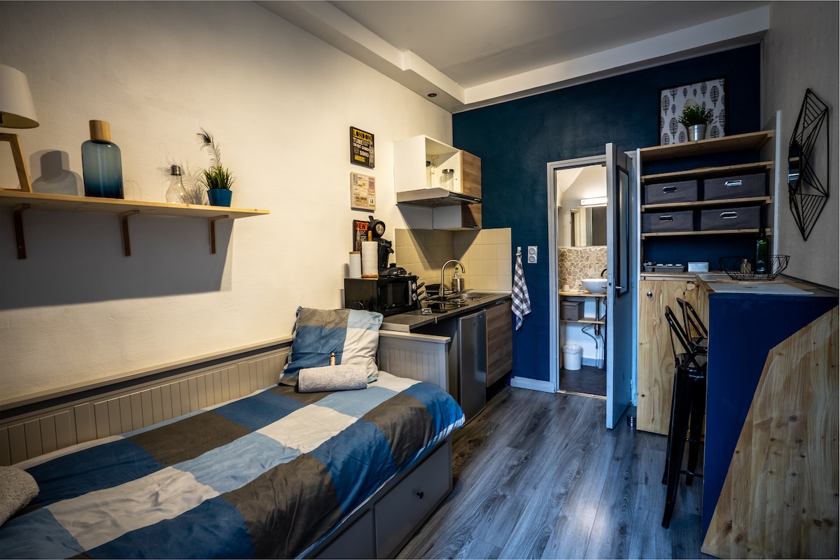 Laipni lūdzam mūsu studijā L’Oasis, kas ir tikko atjaunota un ideāli piemērota ērtai atpūtai. Tā, kas atrodas klusā vietā ar skatu uz zaļo zonu, piedāvā aprīkotu virtuvi, divguļamo gultu, gaisa kondicionētāju, viedo televizoru un Wi-Fi. Piemērots ģimenēm (mazuļu gultiņām, spēlēm) un profesionāļiem, tam ir kopīgs balkons un bezmaksas autostāvvieta. 5 min attālumā no Futuroscope, Aquascope un Arena, kā arī netālu no veikaliem. Drīzumā rezervējiet Poitevine ceļojumu!