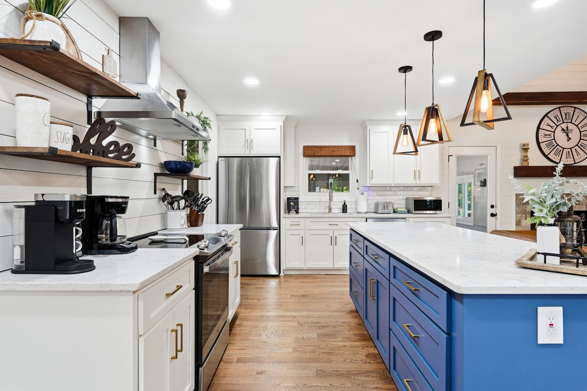 3BR/3BA rančo māja, VIEDTELEVĪZIJA katrā istabā, privāts pagalms, grils un ugunskura vieta. <1 jūdzes attālumā no Walmart, Lidl, Aldi 4 jūdzes līdz Vudstokas centram 15 jūdzes līdz PBR LakePoint 3,5 jūdzes līdz Hwy 575 Viss pārdomāti iekārtotais mājoklis būs jūsu rīcībā. Izbaudiet tikko atjaunoto mājokli ar daudz DABISKO APGAISMOJUMU, PILNĪBĀ APRĪKOTĀM VIRTUVĒM, ekranizētu VERANDU, STUDIJU ar daudzām SPĒLĒM. Nakšņojiet līdz 8 personām! Daudzi veikali un vietējie restorāni 2 jūdžu rādiusā no mājas.