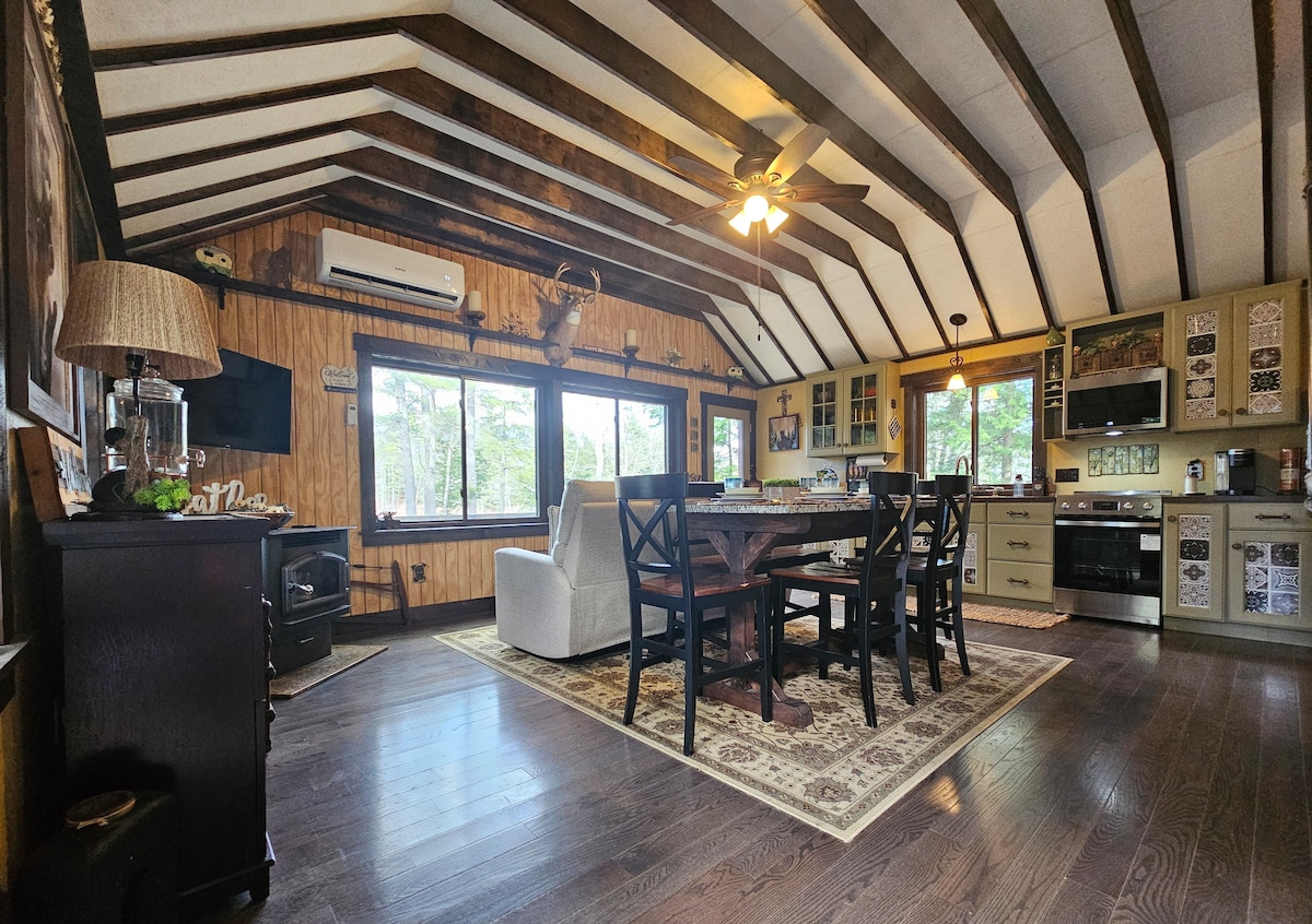 Ģimenēm draudzīgs lauku stila interjera mājoklis, kas atrodas privātā strupceļā. Neliels privāts dīķis ar tikai trim mājām ar piekļuvi. Satriecošs klājs ar skatu uz ūdeni, kas savienots ar galveno guļamistabu, ar katedrāles griestiem un jumta logiem. Neliela ugunskura vieta. Grils. Divkāršais propāna ugunskura vietas galds. Piestātne, kajaks, airu laiva, šūpuļtīkls. Watatic kalns piecu minūšu attālumā. Monadnock kalns 20 minūšu attālumā. Restorāni, pārtikas veikali/iepirkšanās tuvumā. Ideāla vieta atpūtai un dabas baudīšanai.