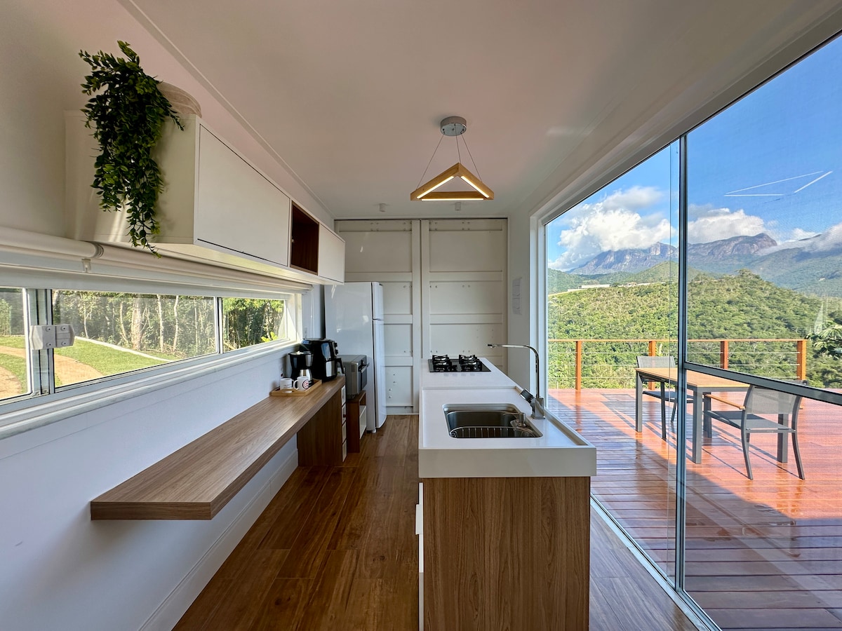 Casa Container Terê ar skatu uz kalniem!