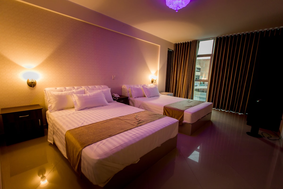 Relájate en nuestras habitaciones, diseñadas para ofrecerte confort y experiencia inolvidable en una zona tranquila de Chiclayo.