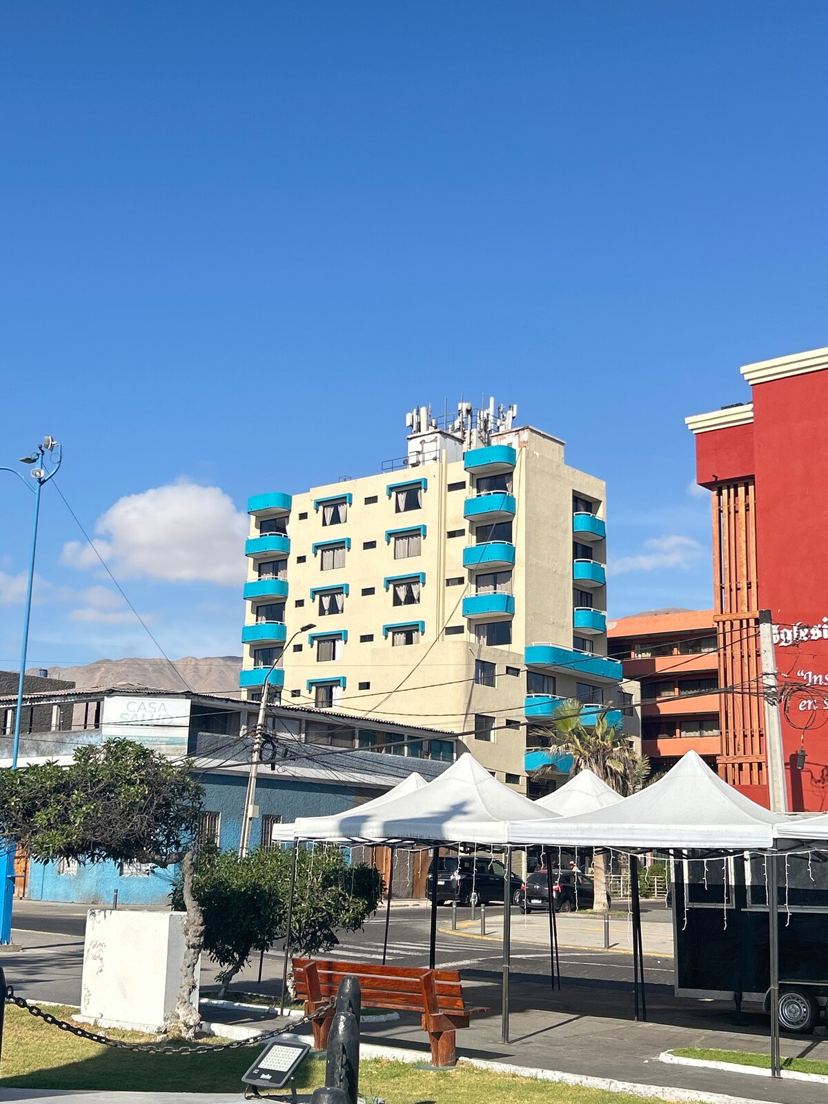 Jauks un ērts dzīvoklis 5 personām, tajā ir 2 guļamistabas un 1 vannasistaba, kas ir pilnībā aprīkota, lai jūs neko nepalaistu garām savā mājoklī. Condominio Distrito Verde atrodas 10 minūšu gājiena attālumā no pludmales, un jūs atradīsieties arī ļoti tuvu pilsētas centram, kas padara to par unikālu vietu, kur doties ekskursijā pa svarīgāko La Serēnu. Tas atrodas klusā vietā, tajā ir baseins, kvinčo, daudzfunkcionāla istaba, velosipēdu vai skeitparks un veļas mazgātava.