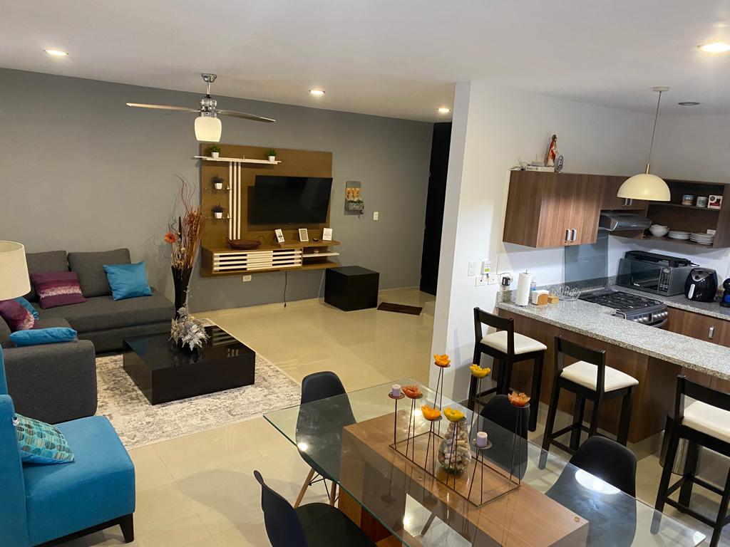 Modern and stylish home in a gated community with 24/7 security — perfect for remote work or vacation. Two bedrooms (King + Queen), each with a private bathroom, fully equipped kitchen, dedicated workspace, private pool, shaded BBQ area, and parking. Located in a quiet, safe area just 5 minutes from the Periférico and 25 minutes from downtown Mérida. A comfortable and functional stay in the northern part of the city.