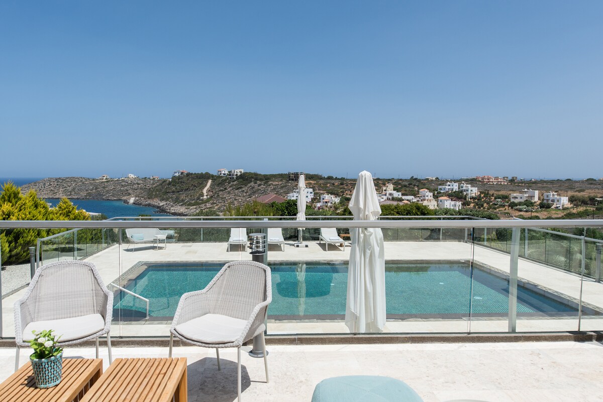 “What a View Villa” ir mierīga atpūtas vieta, kas atrodas privātu rezidenču kompleksā, kurā ir pieejams plašs 95 m² peldbaseins, ko atkarībā no sezonas un aizņemtības var izmantot līdz pat trīs īpašumiem. Atrodas tieši virs skaistas līča, tikai dažu metru attālumā no Krētas jūras kristāldzidrajiem ūdeņiem. Pilnībā aprīkotā un pārdomāti projektētā villa nodrošina ērtu uzturēšanos ar elpu aizraujošiem saulrietiem un skatu uz jūru, kas ir ideāli piemērota viesiem, kuri meklē mieru un satriecošas ainavas.