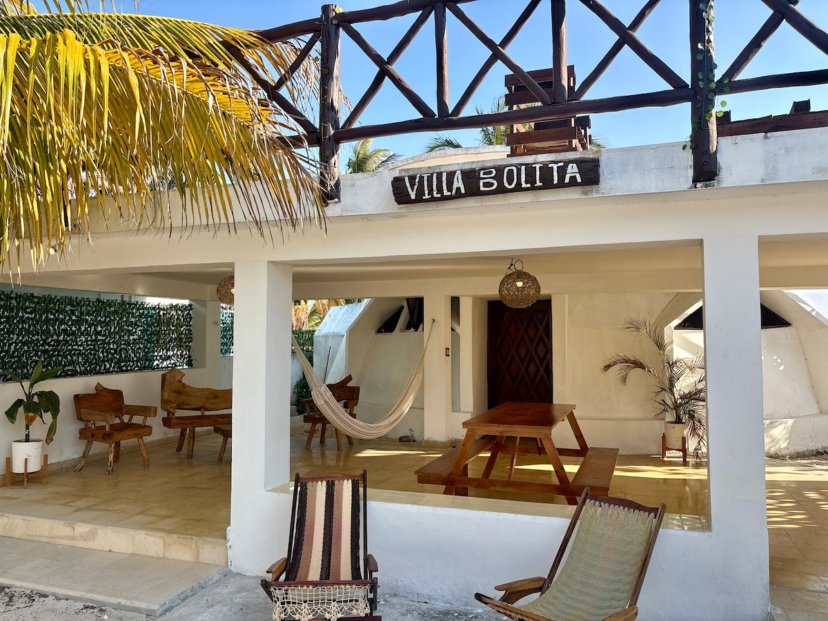 Stilīga arhitektūras māja ar 2 stāviem, kā arī jumtu. 3 guļamistabas ar skatu uz okeānu un savu privāto vannasistabu: 1 guļamistaba pirmajā stāvā un 2 guļamistabas 2. stāvā. Peldbaseins ar skatu uz okeānu. Pagalmā ir daudz palmu. Atlaides ar nedēļu un mēnesi. 3 min līdz Farmers Market 3 min līdz bistro Maasai 4 min līdz Sayab Bistro 5 min līdz sporta zālei 5 min līdz Oxxo 9 min līdz Cafe France 10 min līdz Moluskai 14 min līdz Isla Columpios 20 min līdz Progreso