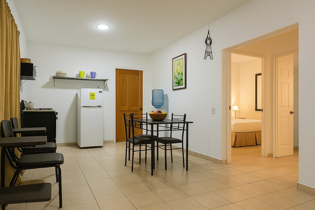 Atpūtieties šajā klusajā un elegantajā telpā, jo īpaši privātajā un drošajā, kas atrodas slēgtā dzīvojamajā trasē, kur jutīsieties ērti un spēsiet atpūsties un izbaudīt kopienas zaļās zonas. Mēs atrodamies netālu no Gasolineras, lielveikala, aptiekām, tirdzniecības centra un 20 minūšu attālumā no lidostas, ja jums ir jāatpūšas pirms vai pēc ceļojuma.