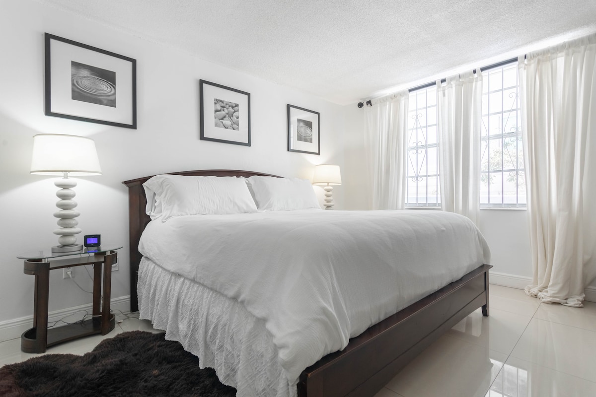 Rezervējiet kopā ar Benichay brāļiem! Terakotas "suite" numurā ir tīrs 2 guļamistabu 2 pilnībā aprīkotu vannasistabu, nesen izremontēts dzīvoklis 1000 kvadrātpēdu dzīvojamās platības (100 m2) Pastaigas attālumā līdz Lincoln Rd un tuvumā ir daudz modernu vietējo bāru un restorānu. Dzīvoklī ērti var uzturēties līdz 6 viesiem. Kūrorta dienas caurlaides ir pieejamas par papildu maksu, jūs varat baudīt piekļuvi baseinam vai pludmalei ar atpūtas krēslu un lietussargu pie tuvumā esoša viesnīcas viesa. Mēs izveidojām 20% atlaidi visiem kuponiem. Bezmaksas autostāvvieta