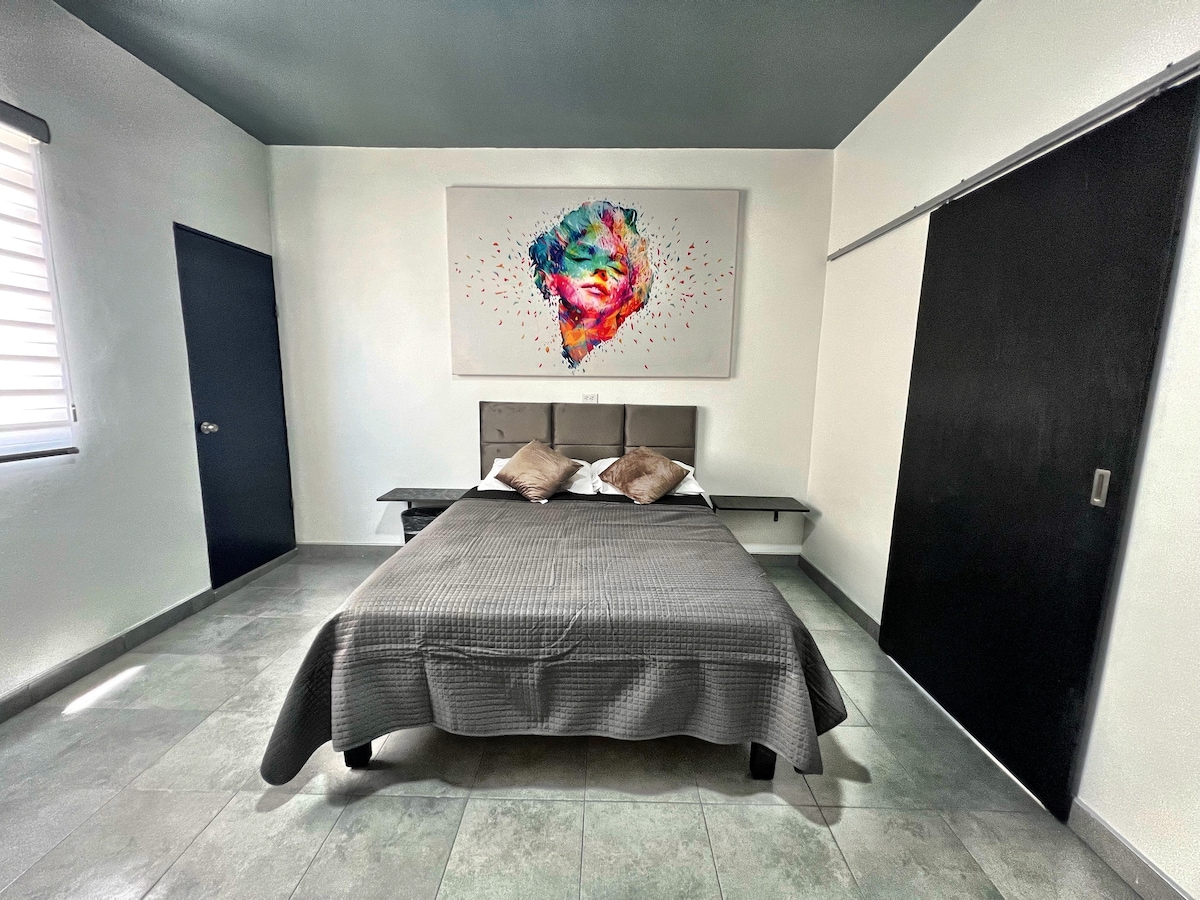 DZĪVOKLIS A – Baltais nams 🏡 Ideāli piemērots, ja ieradīsieties KONSULĀTĀ, strādāsiet vai apmeklēsiet. Tīrs, privāts un gaisīgs. Aprīkota virtuve, apkure, gaisa kondicionētājs, Wi-Fi. Depa pabeigta (nav koplietojama). Klusa teritorija. 10-15 📍 minūšu attālumā no ASV KONSULĀTA un 10 minūšu attālumā no LIDOSTAS. Aptieka, Oxxo un restorāns tuvumā. 🚗 BEZMAKSAS autostāvvieta (koplietojama). PAZIŅOJIET MUMS, ja ņemat līdzi automašīnu 🍼 Mazuļu nožogojums (gultiņa), krēsls un vanna bez maksas. 📸 Nepieciešams personu apliecinošs dokuments, tikai reģistrētiem viesiem, pretējā gadījumā rezervācija tiks atcelta 🚫 NAV APMEKLĒTĀJU, NAV SMĒĶĒŠANAS ⚡ Pašreģistrēšanās
