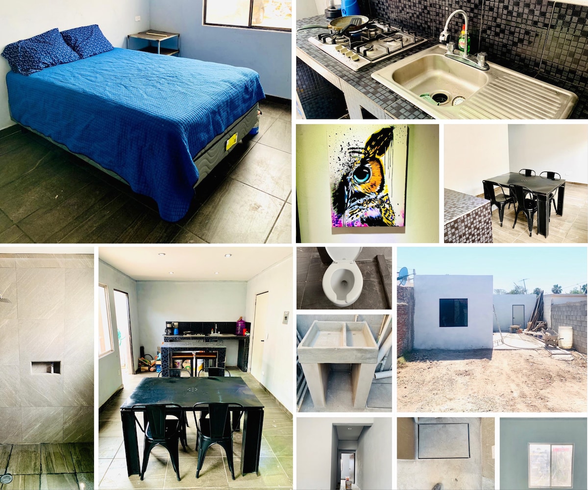 Funkcionāls, ērts un patīkams studijas tipa dzīvoklis 4 cilvēkiem, ir divguļamā gulta, vienguļamā dīvāngulta un piepūšamais matracis. -Tv: Netflix, Prime, HBO Max, Apple TV - Wi-Fi. -Elektriskais grils. - Mikroviļņu krāsns. -Cafetera. -Hot Water -5 min no: Sociālā apdrošināšana, Vispārējā slimnīca, komerciālās vietas, ITSON Nainari, Laguna del Nainari.