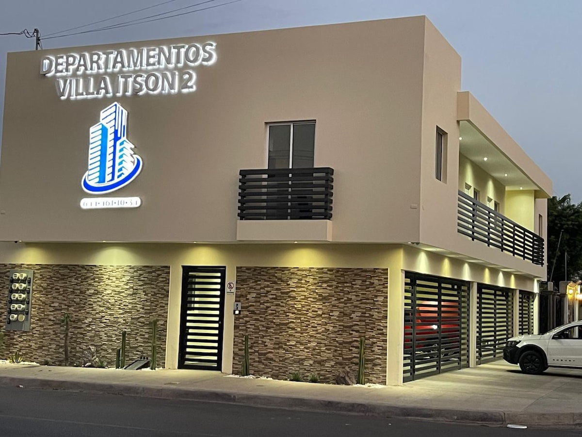 Jauns dzīvoklis 5 m gājiena attālumā no IMSS, Laguna del Nainari un 5 mns ar automašīnu līdz ITSON. Tajā ir divas istabas - viena ar divguļamo gultu un divguļamo gultu un vienguļamo gultu, kā arī dzīvojamā istaba ar atpūtas krēslu, kurā cilvēks var gulēt. Pilnībā aprīkota vannasistaba, virtuve, kas aprīkota ar plīti, mikroviļņu krāsni, ledusskapi, ledusskapi, pannām, virtuves piederumiem un visu, kas nepieciešams patīkamai dzīvošanai. Garāža, pieejamības pārbaude. Āra novērošanas kameras, dārzs un āra terase