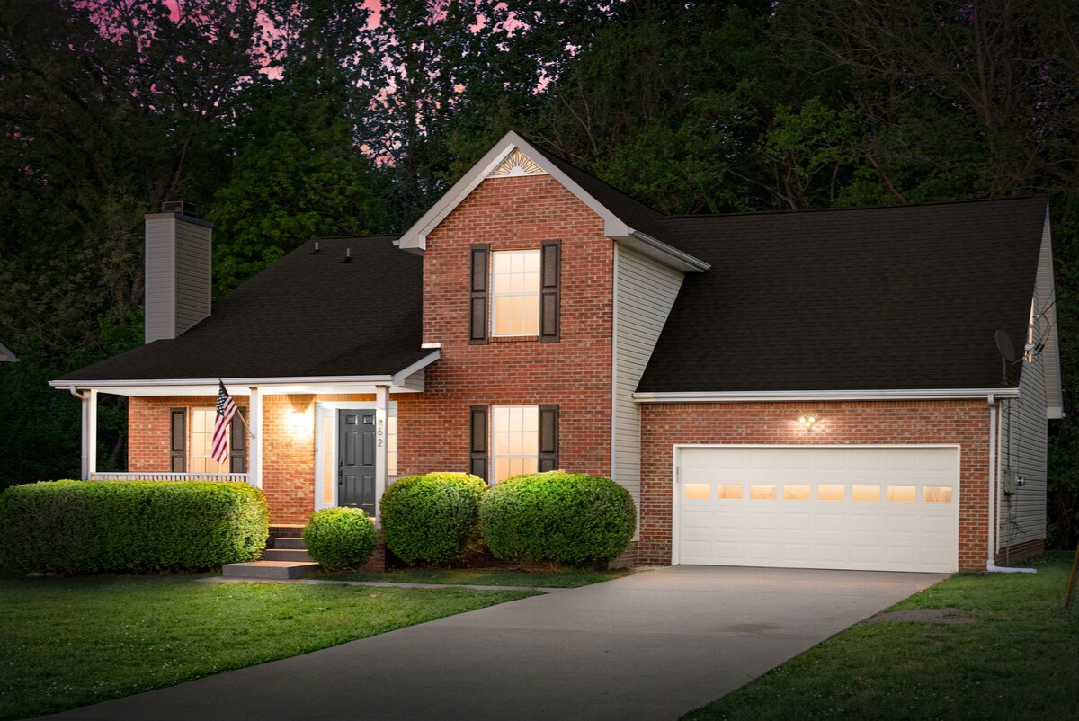 Tikko atjaunināts 3BR/1BA mājoklis, kurā guļ 7 cilvēki. Piebraucamajā ceļā ir 3 automašīnas ar bezmaksas stāvvietu uz ielas, ja nepieciešams. Šis mājoklis ir pilnībā aprīkots ar Wi-Fi, ārējām drošības kamerām, signalizācijas sistēmu logiem un durvīm jūsu drošībai un komfortam, viedtelevizoriem katrā istabā, virtuvi ar ikdienas ierīcēm, virtuvi ar ikdienas ierīcēm, kamīnu, veļas mazgājamo mašīnu/žāvētāju, grilu, ugunskura vietu ar atpūtas zonu, burbuļvannu un iežogotu pagalmu. Mall 2mi, APSU 4.9mi, Oak Grove Casino 11.8mi, Fort Campbell 14mi, Vineyard/Winery 3.8mi, & Nashville 45-50min.
