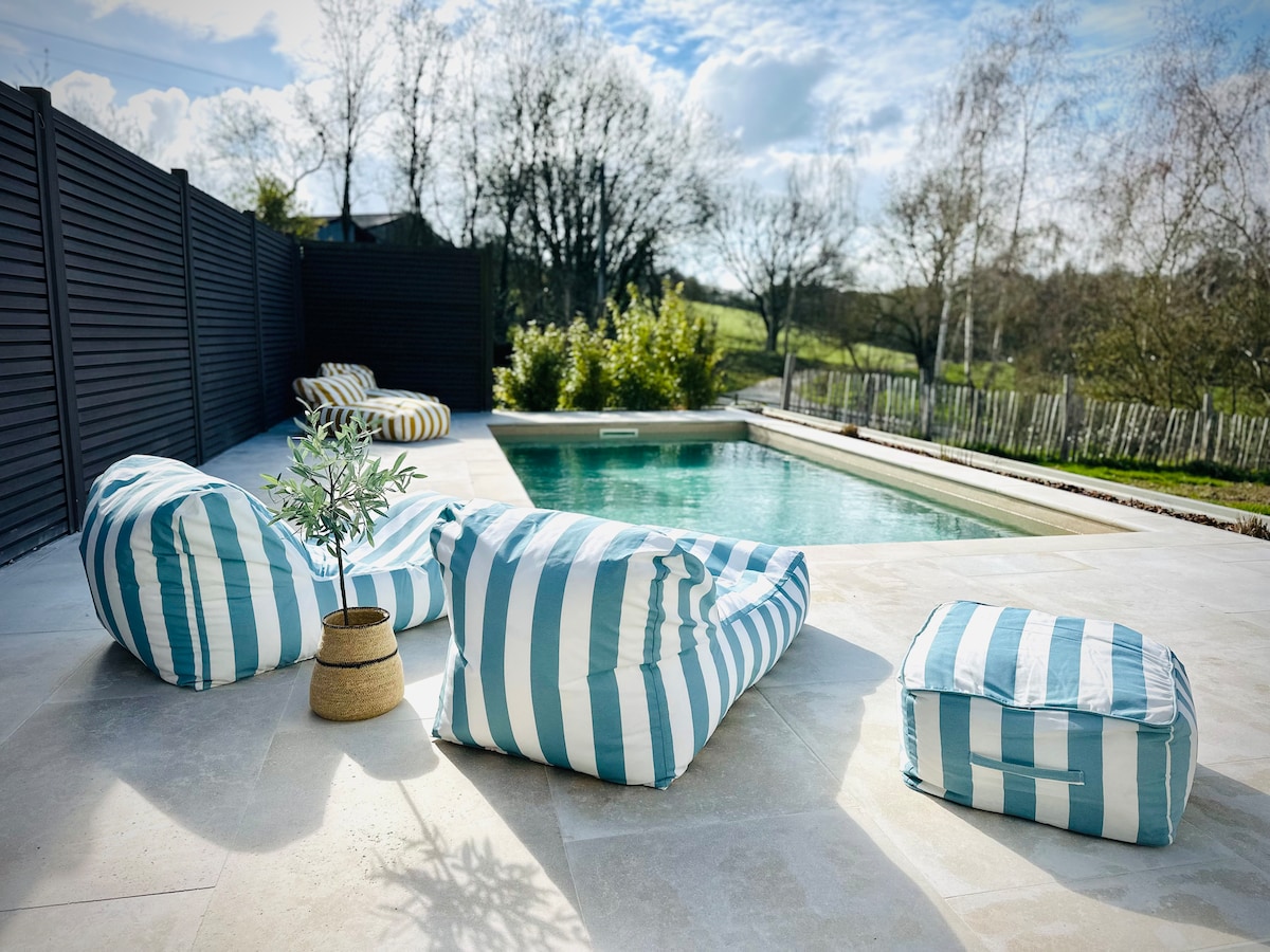 The refuge is designed as an autonomous habitat 40 meters set back from a dead end, the swimming pool is reserved for travelers (open from 01.04 to 01.10). Naxhelet golf course is located 7 minutes away by car. Everything is planned for calm, rest and tranquility. Access is private and enjoys a location in the heart of a one hectare property. The accommodation which is air-conditioned (hot and cold). In winter, the wood stove for warm moments.