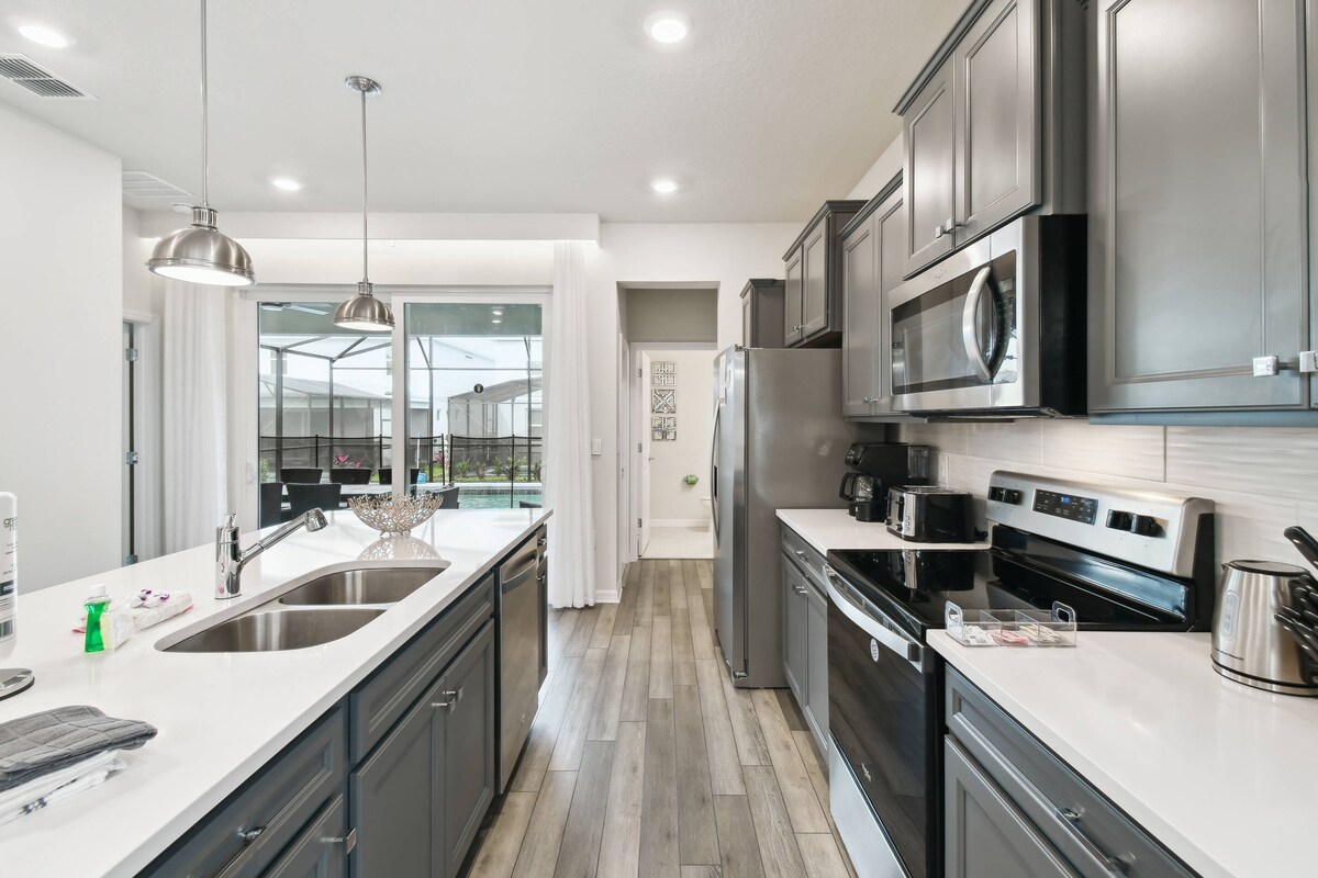 Apburošs un nesen atjaunots 4 gultu/3 vannu mājoklis, kas ideāli atrodas klusā Cul-de-Sac mājoklī dažu minūšu attālumā no Disneja burvības! Šis aicinošais Airbnb ir ideāli piemērots ģimenēm un draugiem, kas meklē neaizmirstamu atvaļinājumu. Izbaudiet modernas papildērtības, piemēram, viedos televizorus, pilnībā aprīkotu virtuvi ar kafijas bāru un jautru spēļu zāli. Atpūtieties privātajā baseinā vai baudiet Floridas sauli uz atpūtas krēsla. Tā ir ideāla atpūta pēc dienas Disnejā. Rezervējiet tūlīt, lai dotos burvīgā un relaksējošā atpūtā!