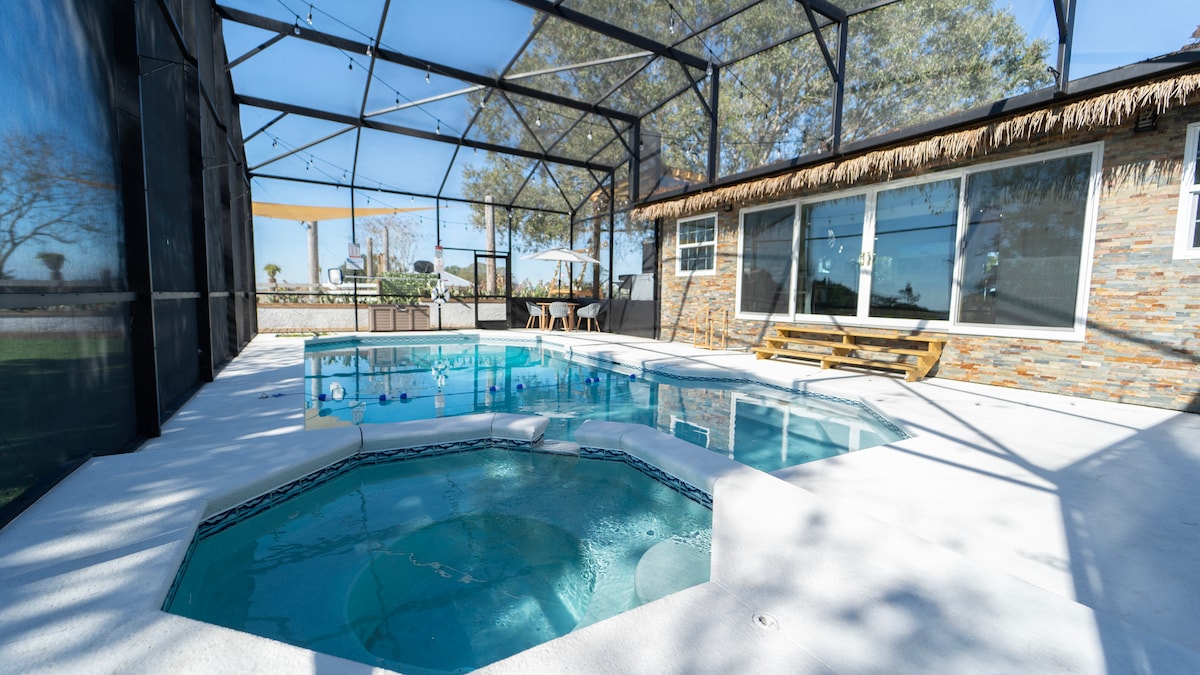 Laipni lūdzam jūsu ideālajā atpūtā Floridā! Šajā skaisti atjaunotajā mājoklī ar 3 guļamistabām un 2 vannasistabām Mineolā ir viss, kas nepieciešams atpūtai un jautrai uzturēšanās laikā. Neatkarīgi no tā, vai ceļojat kopā ar ģimeni, draugiem vai mājdzīvniekiem, šis mājoklis ir veidots tā, lai jūs justos kā mājās. Izejiet ārā uz privāto pagalma oāzi, kurā ir dzirkstošs baseins, burbuļvanna un rāms skats uz mierpilnu dīķi. Iekuriniet grilu, atpūtieties zem tirgus gaismām vai baudiet sauli ar savu iecienītāko dzērienu.
