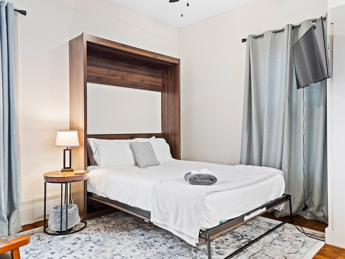 🛏 Divguļamā gulta (Queen) • 1 vannasistaba • 2 guļvietas 🏛 Vēsturiska Kīlvlandas savrupmāja • Studija otrajā stāvā 🍳 Pilnībā aprīkota virtuve • Smart TV • Straumēšanas lietotnes 🚗 Bezmaksas autostāvvieta pie ielas • Klusa vieta 💤 Mierīgs, ērts un pilns šarma 📍 Tieši iepretim Klīvlendas klīnikas galvenajam kampusam (10 minūšu gājiena attālumā, 2 minūšu brauciena attālumā) Atgriezieties pagātnē, baudot mūsdienīgu komfortu šajā gaišajā un krāsainajā studijā, kas atrodas skaisti atjaunotā savrupmājā Klīvlendā.