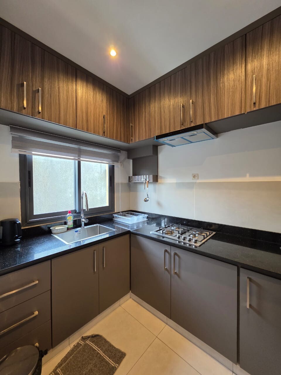 Ienirstiet izsmalcinātā pasaulē, kurā elegance izpaužas melnā, baltā, pelēkā un koka toņos. Katra detaļa ir veidota, lai radītu greznu un siltu atmosfēru, kas ir ideāli piemērota viesiem, kuri meklē neaizmirstamu mājokli. Izbaudiet gaišu dzīvojamo telpu, pilnībā aprīkotu Eiropas virtuvi, kvalitatīvu gultasveļu un neierobežotu Wi-Fi ar 2 savienotiem televizoriem. Šī rezidence, kas ir ideāli piemērota ceļotājiem, kuri meklē komfortu un stilu, sola neaizmirstamu uzturēšanos.