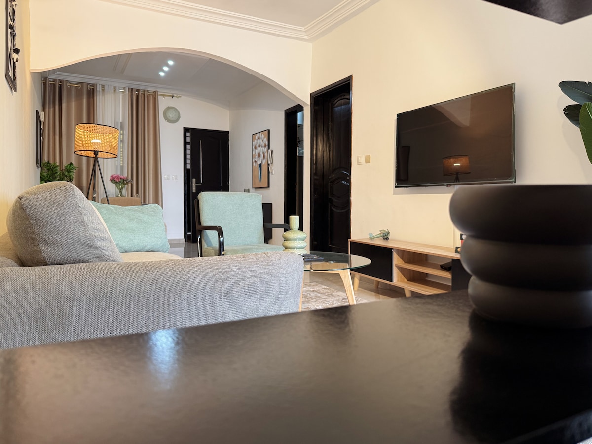 Šis trīsistabu dzīvoklis, kas atrodas pašā Abidžanas sirdī un netālu no visām papildērtībām, ir ideāli piemērots jūsu darījumu braucieniem vai ģimenes brīvdienām. Tas izceļas ar savu moderno un eleganto izkārtojumu, kas apvieno stilu un komfortu. Augstākās kvalitātes apdare, pārdomāts interjers un modernas papildērtības (pilna virtuve, ātrs Wi-Fi, viedtelevīzija utt.) sniegs jums neaizmirstamu pieredzi.