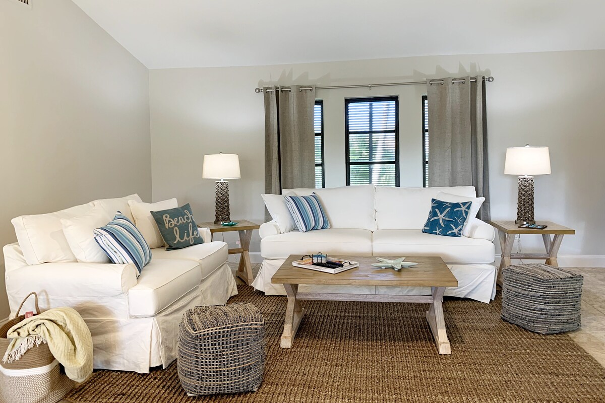 Take a break from the hustle and bustle and relax with the whole family at this peaceful oasis. Heated swimming pool and BBQ area! Fully equipped kitchen and dining room with a Florida room to entertain and play fun games! -7 mins from the beach. -3 mins from country club and golf course. -3 mins from town center. The home also features a double car garage equipped with bikes and beach chairs for guests to use! With 3 bedrooms and a sofa bed, this home can host your family comfortably!