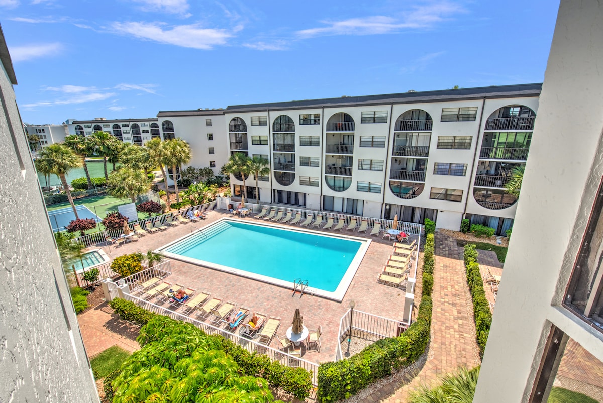 1BR condo, top floor, pool, tennis, Gulf views, AC