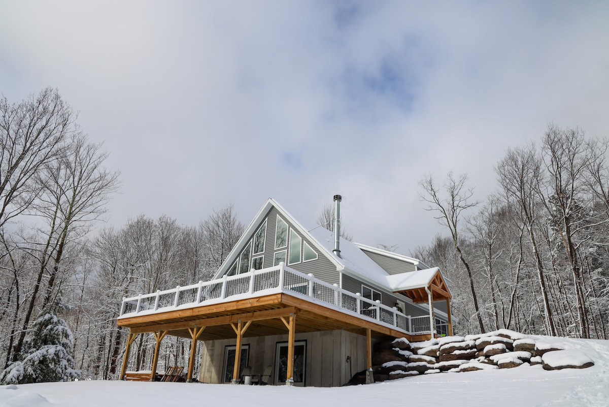 Šis greznais A formas namiņš, kas atrodas klusajā Saugerties mežā Ņujorkā, piedāvā modernu komfortu un dabas skaistumu. Tikai 10 minūšu attālumā no Vudstokas un 2 stundu attālumā no Ņujorkas, Ņūdžersijas, tā atrodas privātā 2 akru laukumā. Ērta piekļuve. Aprīkots ar augstākās kvalitātes Queen Casper matračiem, Breville espresso automātu, 4K projektoru, ugunskura vietu, grilu, ar ciedra malku kurināmu burbuļvannu un saunu. Piemērots suņiem! Mājīga un stilīga atpūta netālu no pārgājieniem, slēpošanas un populārākajām ēdināšanas vietām Katskiļos. Apmeklējiet mūsu ig "highwoodsaframe", lai uzzinātu vairāk!