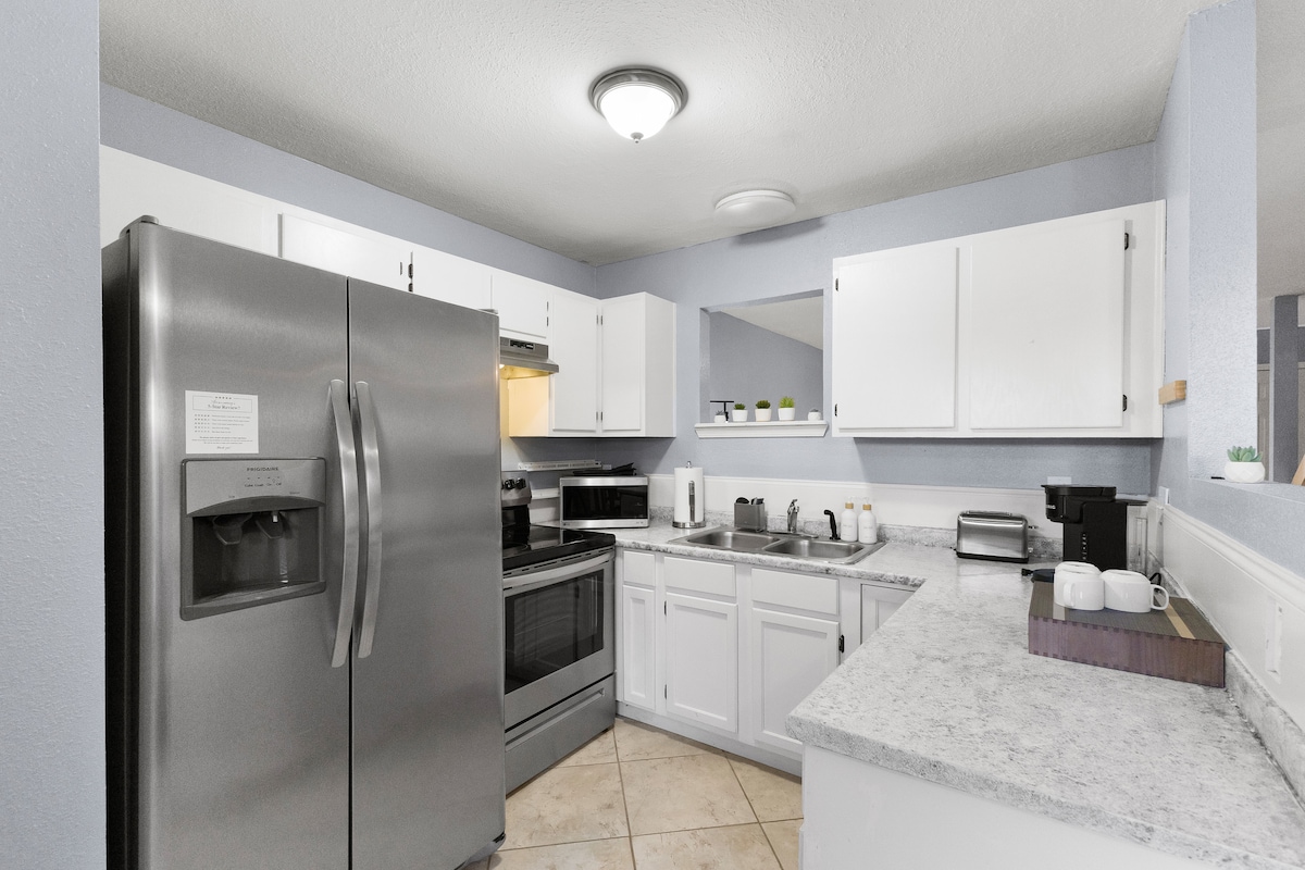 • 5 jūdzes līdz Teksasas A&M • Terase • Viedtelevizori • Kafijas un tējas bārs Izbaudiet stilīgu un ērtu uzturēšanos viesnīcā The Wildflower Retreat, kas atrodas aptuveni 8 kilometru attālumā no Teksasas Lauksaimniecības un mežsaimniecības universitātes un 5 kilometru attālumā no Veterānu parka, un kuras tuvumā atrodas lieliski restorāni. Ideāli piemērots atpūtas braucieniem, Aggie futbola nedēļas nogalēm vai izlaiduma ballīšu apmeklējumiem. Mājoklī ir mājīga viesistaba, 3 viedtelevizori (izmantojiet savus straumēšanas pieteikšanās datus), ātrgaitas Wi-Fi, pilnībā aprīkota virtuve ar kafijas un tējas zonu, žāvētājs/tvaicētājs un privāta terase atpūtai vakaros.