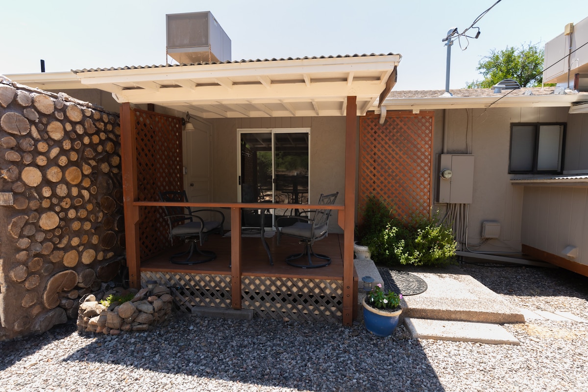 "Welcome Home" ir viena no Fossil Creek 87 Lodge vienībām, kas atrodas Fossil Creek un AZ 87 NW stūrī. Izbaudiet ērtu piekļuvi populāriem veikaliem un restorāniem no šī burvīgā mājokļa. Pamostieties ar brīnišķīgu skatu uz kalniem, skaistām ainavām un dzidru, tīru gaisu. Tas ir ideāli piemērots ģimenei vai grupai līdz pieciem gadiem. Ir 2 divguļamās gultas un nolokāms dīvāns. Privāta cilvēkiem ar invaliditāti piemērota pastaigu duša/vannasistaba, mikroviļņu krāsns, ledusskapis un kafijas automāts. Tuvu pārgājienu takām un biznesa rajoniem.