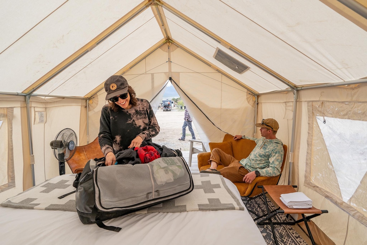 Atgūstiet saikni ar dabu šajā neaizmirstamajā ceļojumā. Mūsu 12x14 audekla telts, ko ar rokām darinājusi Davis Tent Co, ir jūsu rīcībā! Telts ir aprīkota ar malkas plīti, galdu un krēsliem, kā arī divguļamo gultu, kurā ir daudz vietas diviem citiem guļammaisiem. Ārā jūs gaida piknika galds, ugunskura vieta un sagriezta koka grēda. Bristlecone Camp atrodas rančo centrā, norobežotā kokā ar bristlecone priedēm un apsēm, no kurām paveras skaista panorāma un iedvesmojošs 360’ skats.