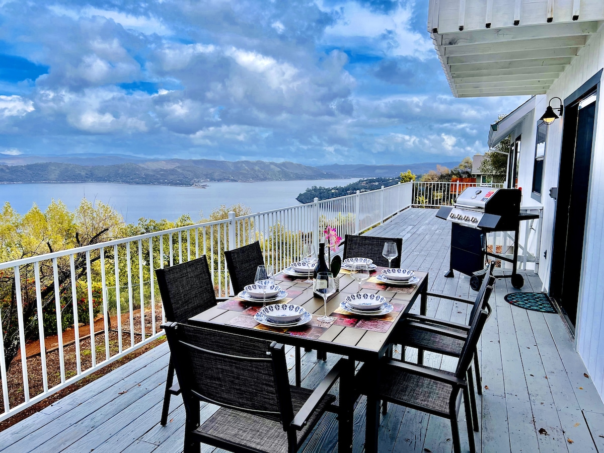 Need to unplug? Burned out? Crave quiet and beauty? Summerset is the cure. Lakehouse on private 3 acres. Exquisite top of the world panoramic water views, magical Mt. Konocti, epic sunsets, and stars. 2B 2Bath, open great room, stocked kitchen. Designed for rest and recharging the soul. Do absolutely nothing...or visit wineries, yoga on the deck, (mats provided) fish, hike, bike, boat. Enhanced cleaning, peaceful surroundings for sound sleeping. Park the car and your cell. Time to reboot.