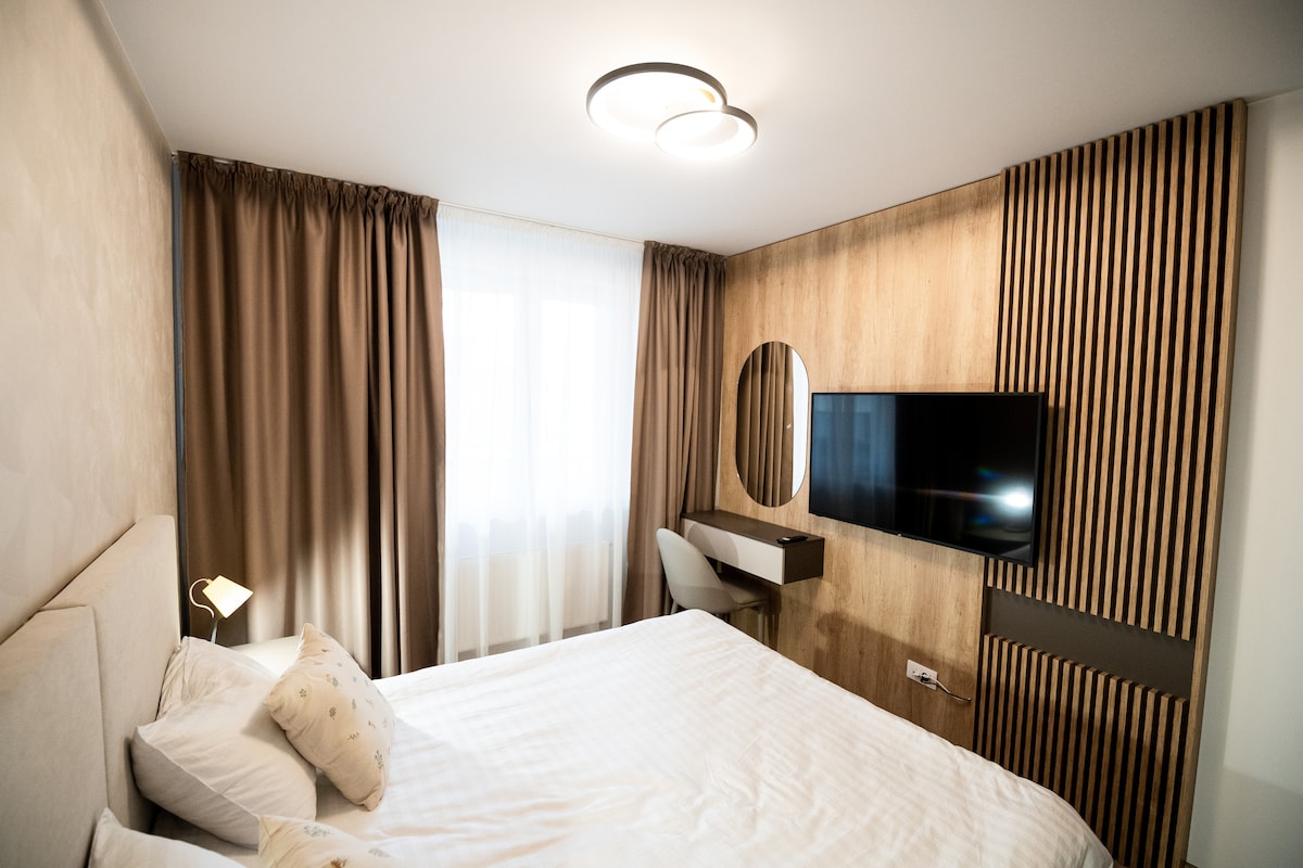 City Vibe Studio este o alegere perfecta pentru familie sau cupluri. Este situat intr-un cartier linistit cu parcare gratuita la o distanta de 2 km de Afi Mall. Dragii noștri oaspeți, Dorim să vă aducem la cunoștință că, în conformitate cu legislația locală, se aplică următoarele taxe: Taxa turistică: 5,00 RON/persoană/noapte Taxa de oraș: 7,00 RON/persoană/noapte Acestea nu sunt incluse în prețul cazării și vor fi achitate direct gazdei. Vă mulțumim pentru înțelegere și vă așteptăm cu drag!