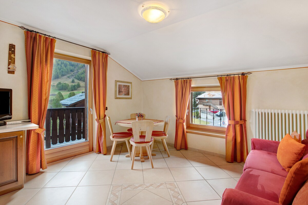 Jauks brīvas telpas dzīvoklis diviem cilvēkiem 100 metru attālumā no Carosello 3000 slēpošanas pacēlāja. Iekārtojieties klusā vietā, bet tuvu visiem Livinjo apskates objektiem. Autostāvvieta konstrukcijā. Slēpošanas/velosipēdu glabātuve ar zābaku sildītāju.