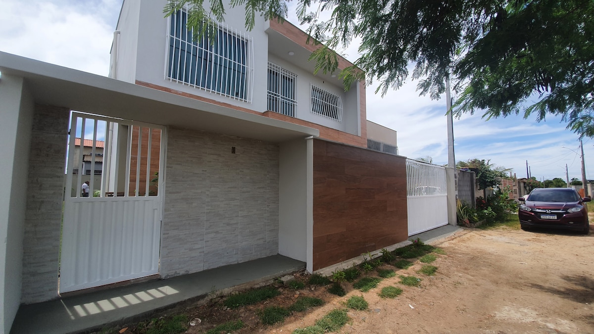 Divstāvu māja un mini baseins. Jūsu ģimene atradīsies tuvu visam, labi atrodas Conceição da Barra centrā (tas NAV VILA DE ITAÚNAS). Visu var paveikt ar kājām, blakus tirdzniecībai. Ampla un nesen atjaunots. Terase ar skatu uz ielu , 4 apartamenti un 1 guļamistaba ar divām vienguļamām gultām. Gaisa kondicionētājs un ventilators visās telpās. 30 min attālumā no Vila de Itaúnas. GULTAS UN VANNASISTABAS GULTASVEĻA NAV PIEEJAMA.