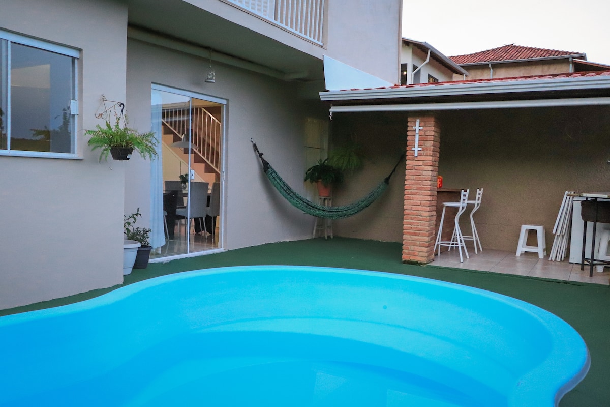 Este encantador sobrado azul é um convite ao descanso e tranquilidade. Relaxe na rede de descanso do quintal, no enorme sofá da sala ou na super king size da suíte. Outros dois quartos com roupas de camas muito confortáveis e limpas completam o lar. Wi-Fi de 800mb, ar condicionado em dois quartos, duas TVs, cozinha completa, lavanderia e três banheiros garantem praticidade. Check in / out flexíveis. Um convite para experimentar a combinação perfeita de conforto moderno e tranquilidade.
