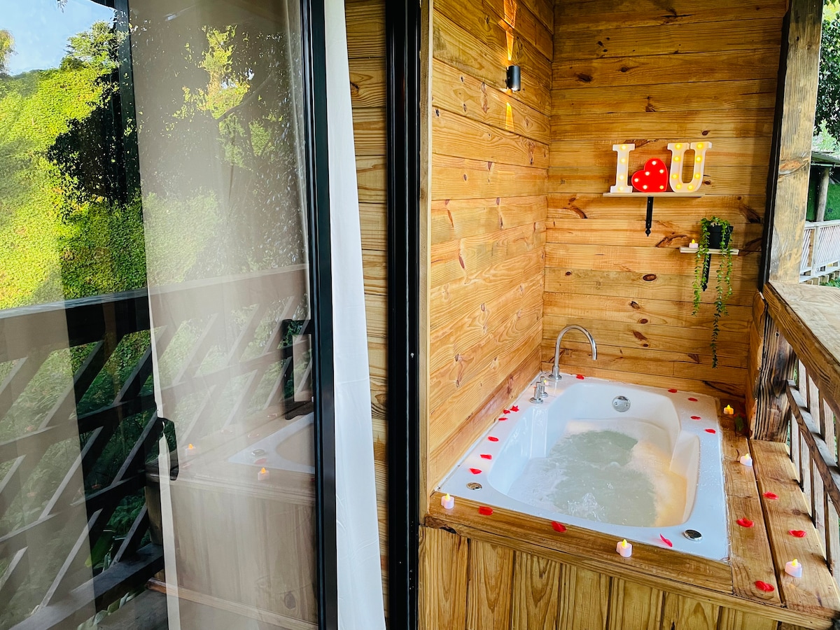 (Absolute privacy) Espectacular one bedroom Villa located 14 min from the center of jarabacoa easy access on any type of car. Uniquely and personalized built to help couples scape from the wourld to a private and peaceful Stay. Private and heated pool right at the bedroom side, 360° rotating TV, king size bed, Elegant kitchen and amazing bathroom. Free wifi power by starlink.