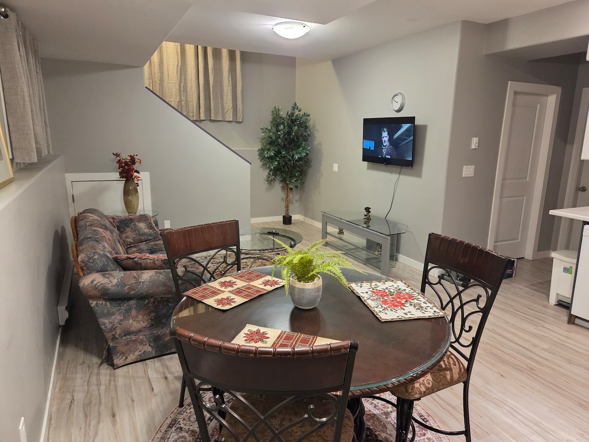 Atpūtieties šajā mierīgajā un stilīgajā 2 guļamistabu mājoklī, kas radīts, lai justos kā mājās, pat ja neesat mājās. 1042 kv/pēdas telpas galvenajā stāvā; jūs atradīsiet 2 galvenās guļamistabas (ne vairāk kā 4 pieaugušajiem), luksusa 5 gab. vannasistabu, veļas mazgātavu, pilnībā aprīkotu virtuvi, kafijas bāru, ēdamistabu, viesistabu ar elektrisko kamīnu un plašu autostāvvietu ārpus ielas. Neatkarīgi no tā, vai ceļojat darījumu braucienos vai atpūtā, mūsu mērķis ir nodrošināt jums visērtāko uzturēšanos un Airbnb pieredzi.