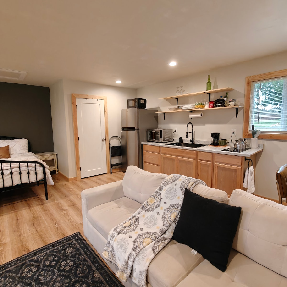 Gaiša, skaista studija ar pilnu virtuvi, kafijas bāru, privātu vannu un āra ugunskura vietu. Blakus āra ciedru pirts, ko mēs dalām ar viesiem abās ēkās. Dažu minūšu attālumā no Anakortas prāmju termināļa. Piezīme: mēs dzīvojam augšstāvā pilnīgi atsevišķā mājas daļā, un studija atrodas blakus citai ēkai. Mēs esam maksimāli nodrošinājuši mājokļa skaņas izolāciju, taču ir normāli trokšņi, kas saistīti ar kopīgu dzīvošanu. Studijā ir viena "queen" izmēra gulta. Mēs nepieņemam bērnus.