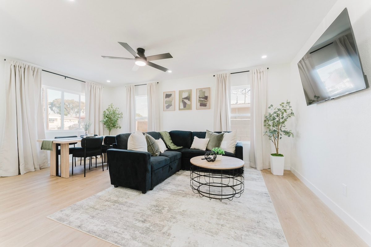 Newly remodeled 2 bedroom 1 bathroom unit in Chula Vista with a sofa sleeper in the living room to sleep 6 guests. House is 1 mile away from the ocean, bayfront expansion project, and close to the new Gaylord resort and Chula Vista mall. The utilities are included in price. Utilities include water, electricity, trash and WiFi. Home has central air and heat. Parking available. Large backyard is shared with other unit. Garage/storage available for extra price.