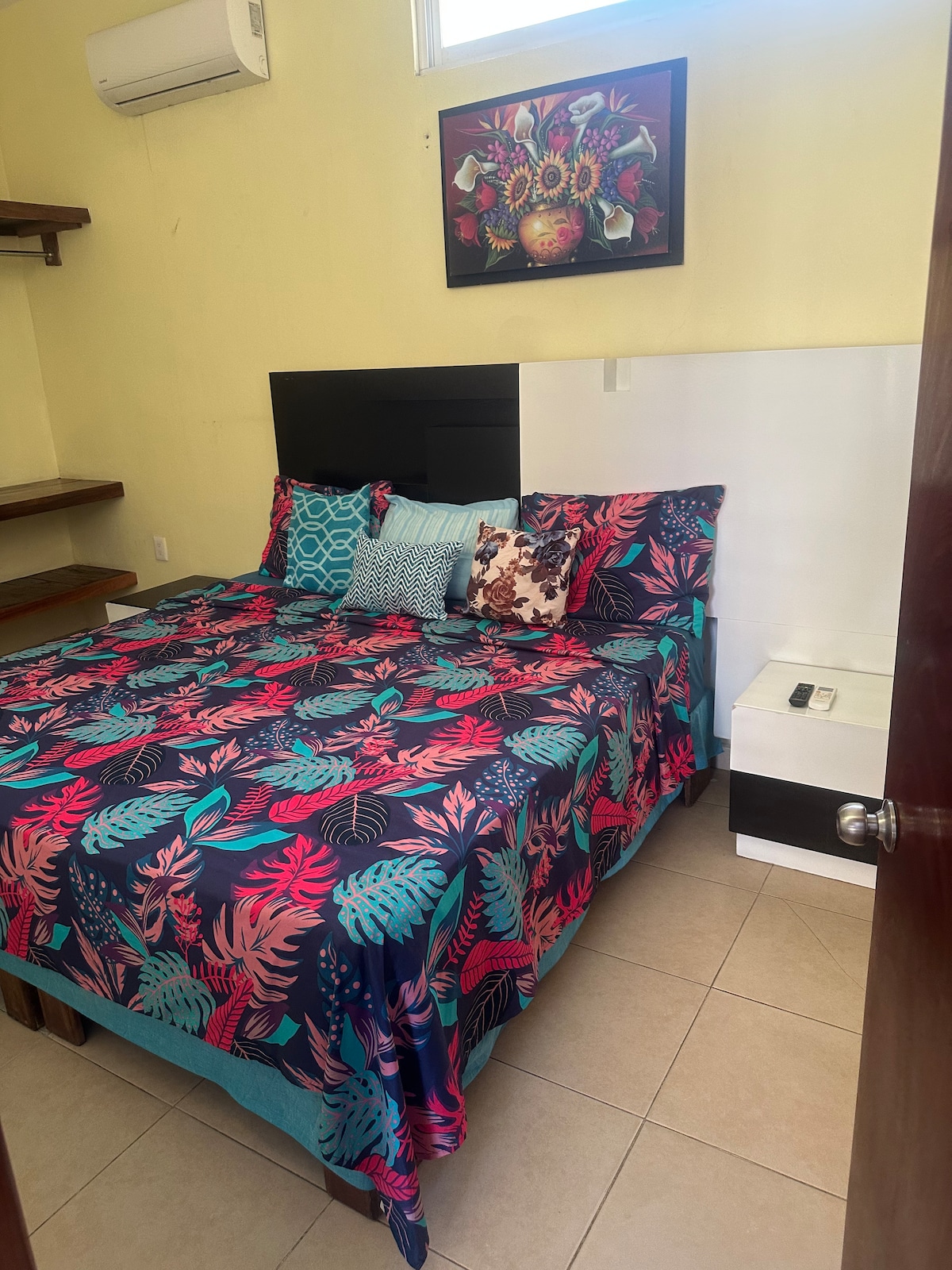 Este encantador y exclusivo lugar para quedarte en nuestra súper confortable suite. Completamente equipada con cocina, sala y comedor. Suite Surf cuenta con una muy amplia habitación caben hasta 4 personas, aire acondicionado, cama king size, cama individual y sofá cama. dentro del Hotel-restaurant Mi Jardin Troncones, donde maximo se pueden hospedar 10 personas lo cual hace de este lugar un espacio perfecto para descansar a solo un minuto caminando de la playa. No aceptamos menores de 4 años.