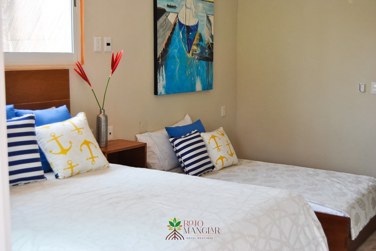 Telpa ir liela istaba ar divām divguļamām gultām, kumodi ar spoguli un privātu vannasistabu ar plašu tualeti. Istabas atrodas klusā zonā, 15 minūšu gājiena attālumā no Zihuatanejo dowtown un pludmales. Pie ieejas ir restorāns, kurā ir arī atklāta telpa.