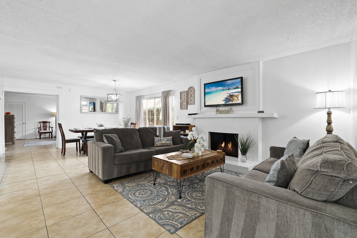 Laipni lūdzam jūsu mājoklī pludmales tuvumā - prom no mājām! Tikai 4 kvartālu attālumā no smiltīm, šis pārveidotais dzīvoklis ar 2 KING IZMĒRA GULTĀM/2 VANNAS ISTABĀM ir ideāla bāze atpūtai piekrastē. Plašs un ģimenei piemērots mājoklis ar pārvietojamiem gaisa kondicionieriem, centrālo apkuri un pilnībā aprīkotu virtuvi, kā arī pludmales piederumiem, augsto krēslu un bērnu rotaļu nožogojumu. ĒRTA AUTOSTĀVVIETA. Jūs būsiet tuvu pilsētas centra restorāniem, Kongresu centram (1,4 jūdžu attālumā) un Disnejlendai (15 jūdžu attālumā). Lūdzu, ņemiet vērā: pēc plkst. 22.00 nav atļautas ballītes, papildu viesi vai skaļš troksnis.