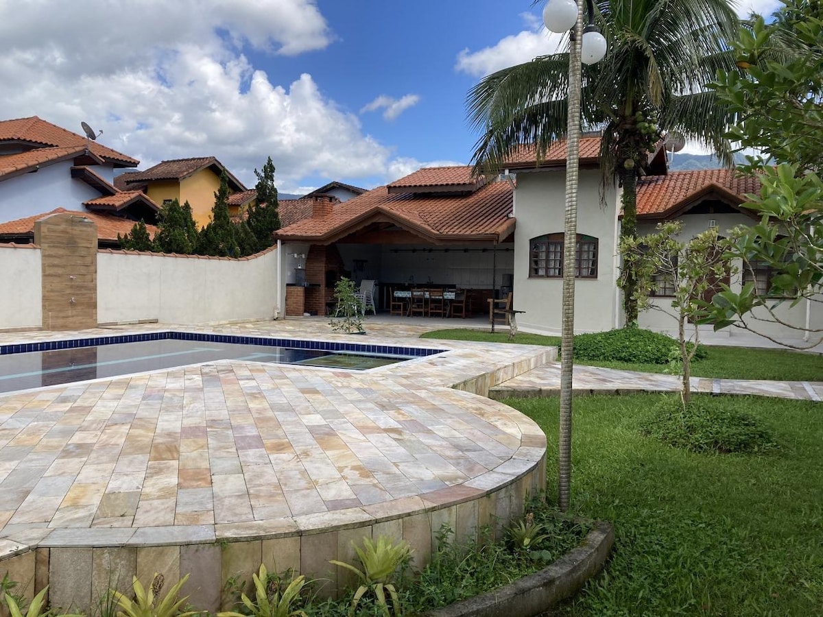 A casa é rústica, bem arejada, ar condicionado na suite, nos outros quartos e salas ventiladores. Os quartos e sala abrem para a varanda com vista maravilhosa para o mar eos picos da Serra do Mar. Dá para ver muitas espécies de pássaros , animais silvestres . Muita tranquilidade, segurança 24/hs, salva vidas na praia, mar calmo, perfeito para crianças e para esportes marítimos. No verão 1 deck flutuante fica no mar, dele da pra ver tartarugas passeando. Acima 6 hóspedes é cobrada diária extra