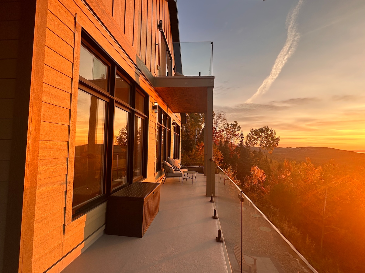 Villa avec piscine creusée situé entre fleuve et montagnes. Eskal, se démarque par son design épuré et sa grande fenestration. Entièrement équipée, la résidence possède 1 spa, 3 foyers, 3 chambres spacieuses avec salle de bain privée, 1 salle de jeux et sans oublier 1 piscine creusée chauffée avec vue sur le Fleuve St-Laurent ! Vous serez sans aucun doute charmé par les spectaculaires lever du soleil et le doux son de la rivière et des chutes à proximité. Capacité 6 adultes maximum et 4 enfants.