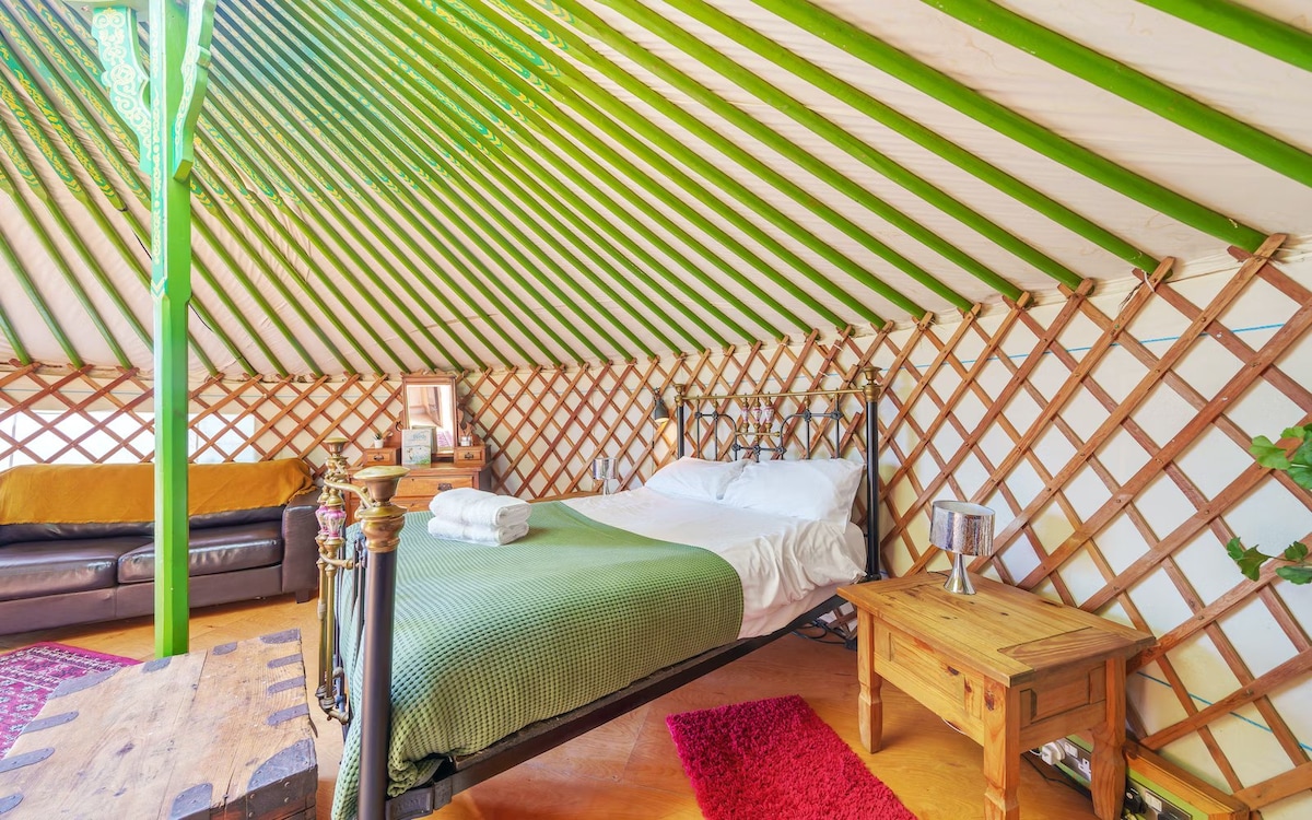 Jurta piedāvā glempingu citā līmenī. Imbera ierāmēta ar terases ārtelpu ir viss, ko varat vēlēties,pilnībā aprīkots ar viedo televizoru, malkas degli, divguļamo gultu un dīvānu,ekskluzīvu virtuvi ar tosteri,tējkannu,mikroviļņu krāsni, retro ledusskapi, 2 gredzenu plītiņu un pilnu Belfāstas izlietni. Vannasistabā ir tualete, duša un tualetes pods. Ārpusē ir papildu papildu terase, kas ir ideāli piemērota maltītēm un burbuļvannas baudīšanai.