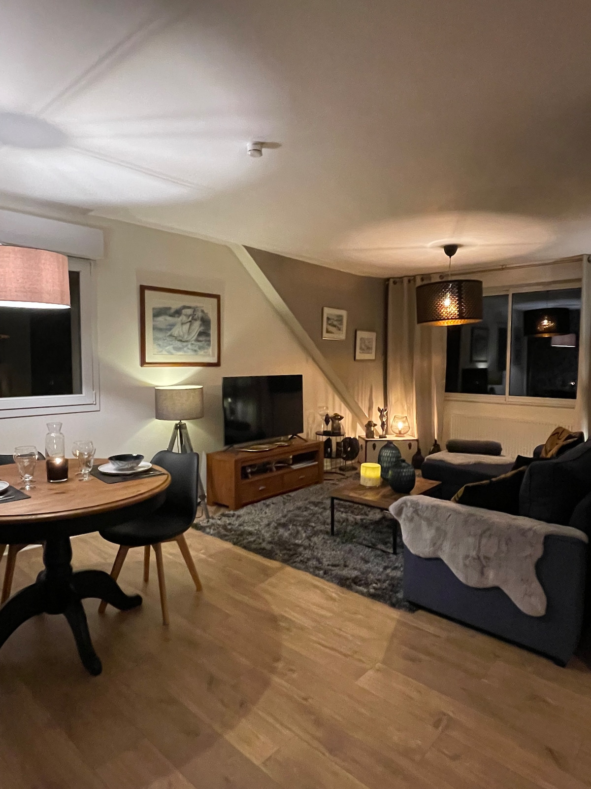 Burvīgs dupleksa dzīvoklis ar netraucētu skatu uz Granvilu skaistas ēkas 3. stāvā. Tā atrodas tikai dažu soļu attālumā no Plat Gousset pludmales, pilsētas centra un ostas. Viss ir pastaigas attālumā, un jūs ātri atrodaties Place du Cours Jonville (sestdienas rīta tirgus, segtā halle) un pludmalē ar jūras ūdens baseinu.
