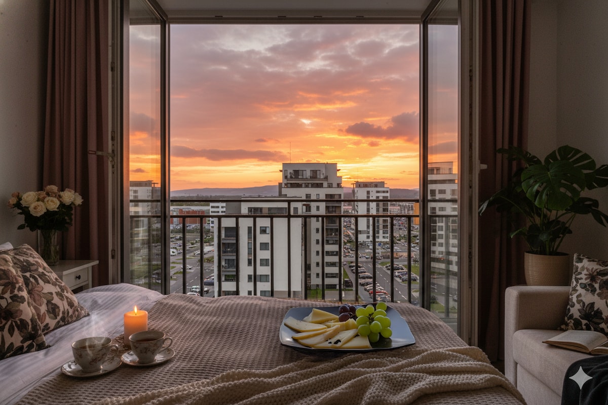 Laipni lūdzam mūsu mājīgajā un modernajā Airbnb dzīvoklī Brasovā, kas atrodas mazāk nekā 1 km attālumā no pilsētas centra. No mūsu dzīvokļa paveras satriecošs panorāmas skats uz pilsētu un majestātisko Tampas kalnu. Mūsu dzīvoklī ir stilīga un pilnībā aprīkota virtuve, plaša viesistaba, ērta guļamistaba un moderna vannasistaba. Viena no nozīmīgākajām mūsu dzīvokļa priekšrocībām ir privātā autostāvvieta, kas ir īpaši vērtīga tādā pilsētā kā Brasova.